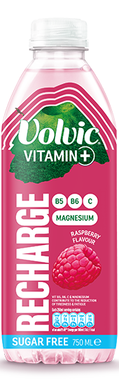 Volvic + Recharge combines fruity raspberry flavor with vitamins and magnesium, which help reduce tiredness and fatigue—all without sugar or preservatives!